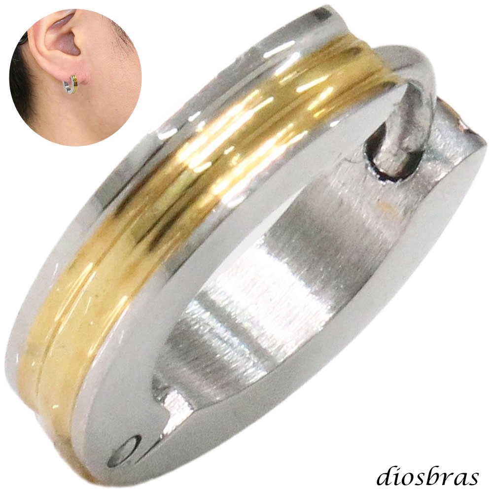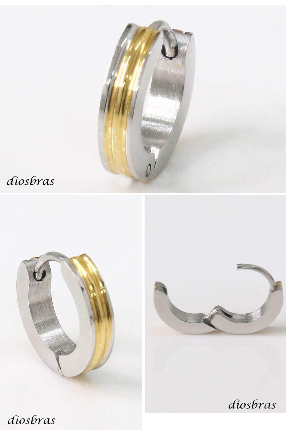 ステンレス フープピアス シルバー 金属アレルギー対応 ゴールド ライン メタル素材 シンプル 小さめ フープ ループ リング 輪っか ピアス ゴールド メンズ アクセサリー レディース 中折れ式 14mm [dios-pi443-gt]