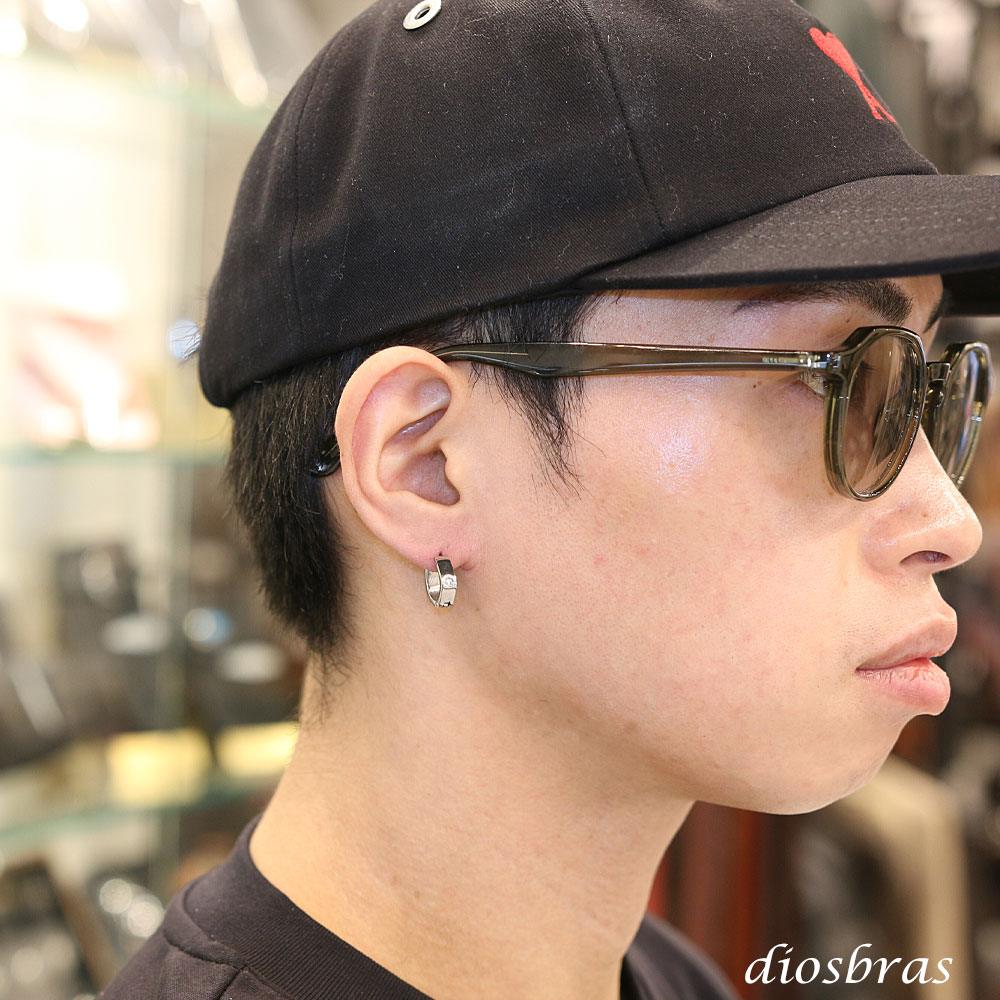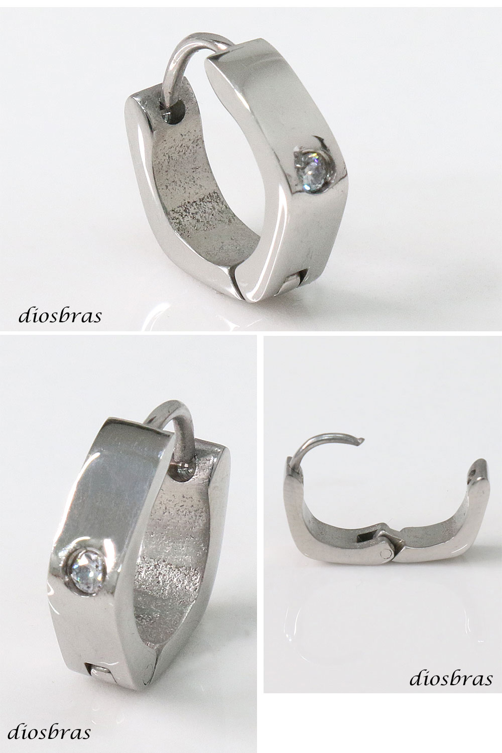 ステンレス フープピアス ジルコニア シルバー 金属アレルギー対応 メタル素材 シンプル 小さめ フープ ループ リング 輪っか ピアス アクセサリー メンズ レディース 中折れ式 13mm [dios-pi448-gt]