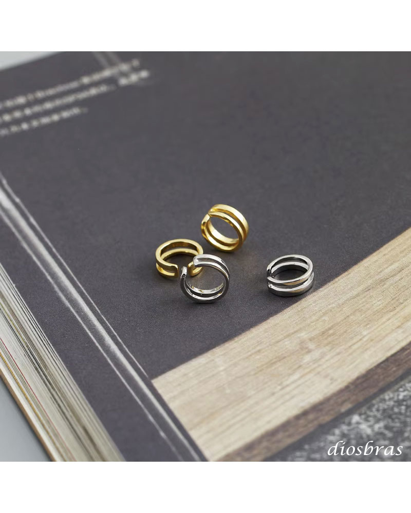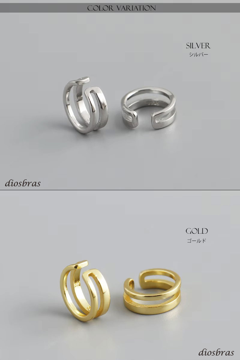 イヤーカフ シルバー 925 2連 フープ リング ノンホール ミニマム ミニマリスト ゴールド シルバー 片耳 金属アレルギー対応 刻印 片耳 片方販売ピアス メンズ レディース [eac-31]