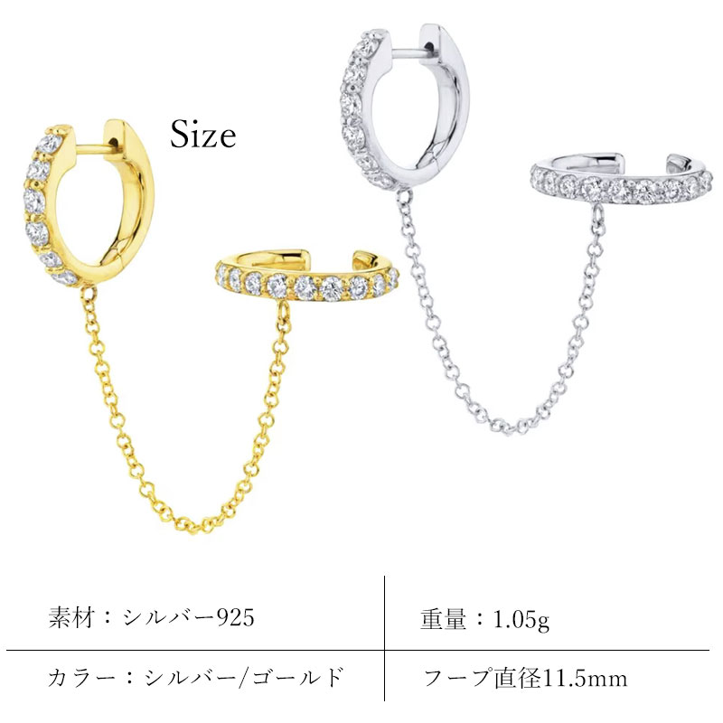ピアス 2連 チェーン イヤーカフ シルバー 925 フープ リング 小豆 アズキ あずき チェーン マリーナ マリーン アンカー ドロップ ジルコニア CZ ノンホール ミニマム ミニマリスト ゴールド シルバー 片耳 金属アレルギー対応 片方販売ピアス メンズ レディース