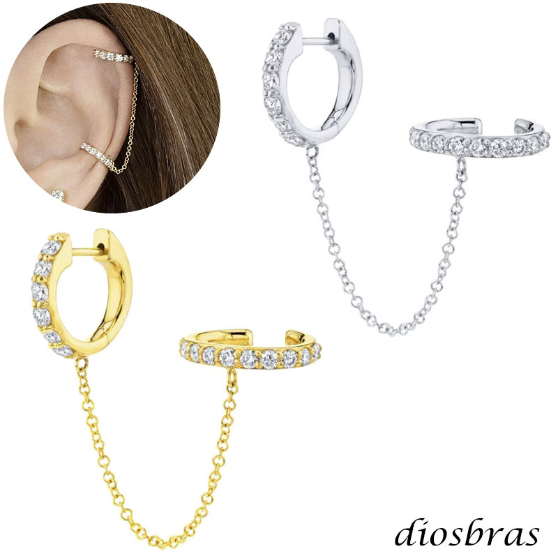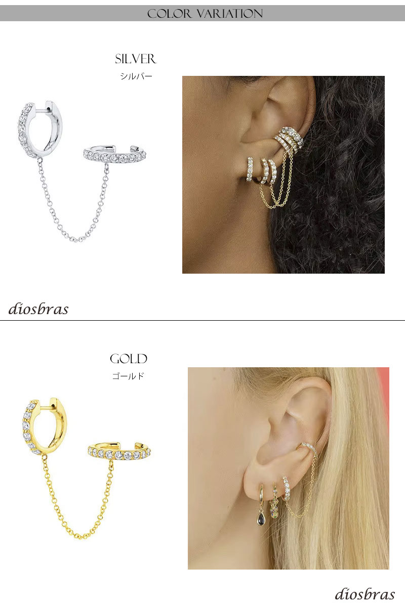 ピアス 2連 チェーン イヤーカフ シルバー 925 フープ リング 小豆 アズキ あずき チェーン マリーナ マリーン アンカー ドロップ ジルコニア CZ ノンホール ミニマム ミニマリスト ゴールド シルバー 片耳 金属アレルギー対応 片方販売ピアス メンズ レディース [eac-27]