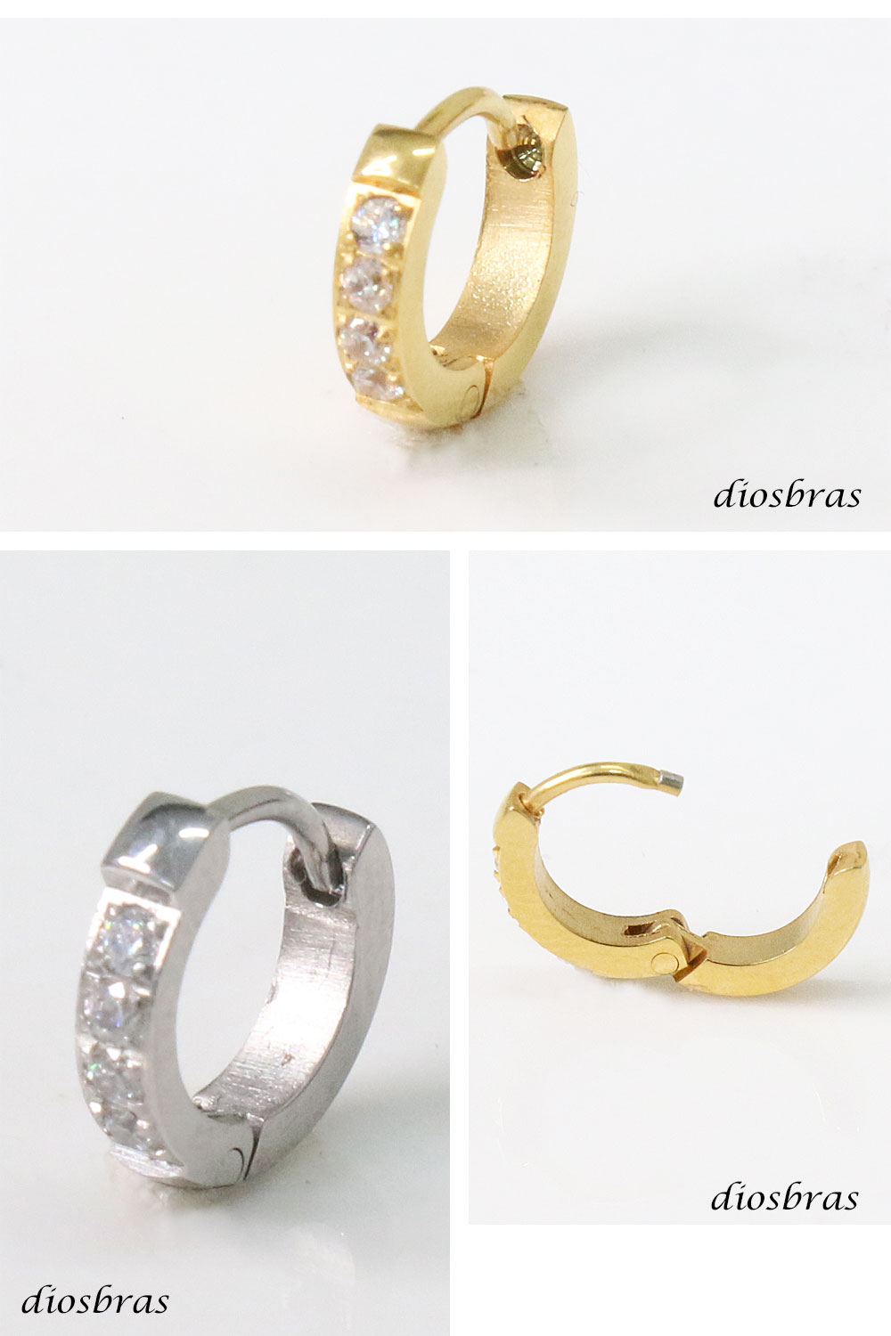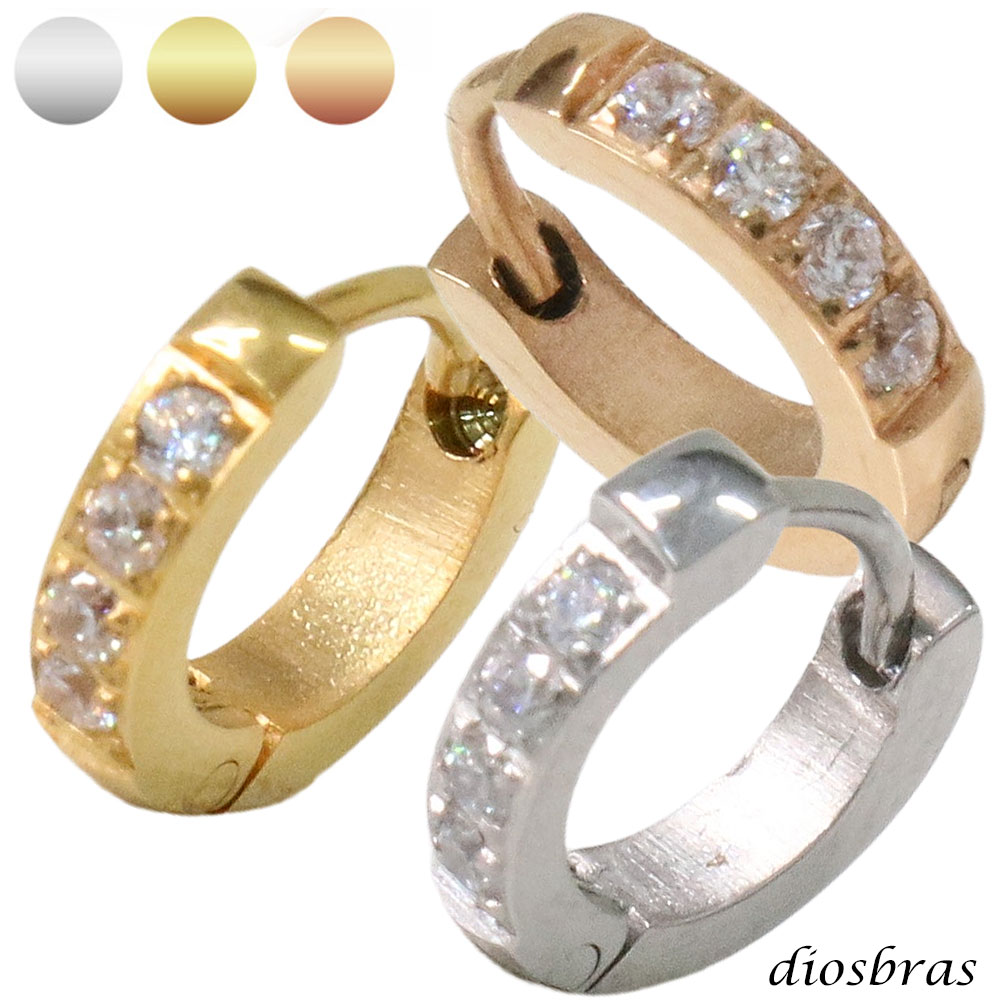 ステンレス フープピアス ゴールド シルバー ローズゴールド ジルコニア 金属アレルギー対応 メタル素材 シンプル 小さめ フープ ループ リング 輪っか ピアス アクセサリー メンズ レディース 中折れ式 9mm [dios-pi451-gt]