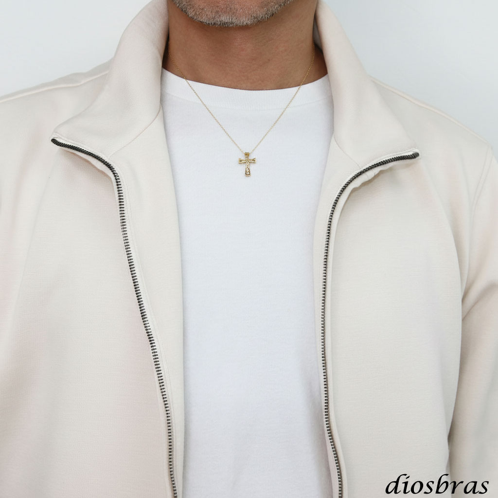 日本製 クロス 十字架 立体構造 ペンダント トップ k18 ダイヤモンドカット スターカット 菊花彫り チェーン付き 放射状幾何学模様 シンプル ゴールド 18k メンズ レディース クロスペンダント 18金 チャーム アズキチェーン 長あずきチェーン 小豆チェーン ネックレス [dp-k18-83]