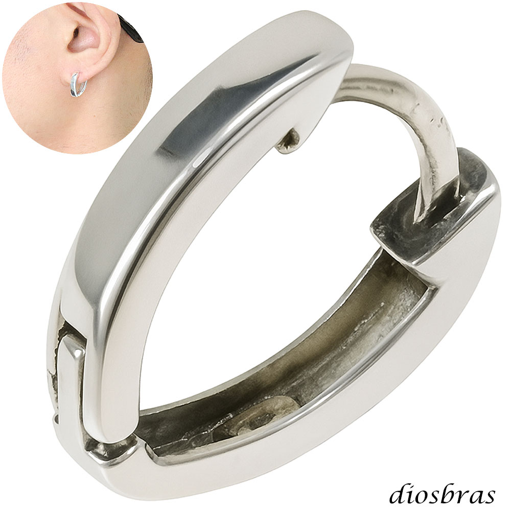 フープピアス リング シルバー925 ピアス メンズ レディース 激安ピアス イヤリング アクセサリー フープ 本物シルバー925 片方ピアス メンズ レディース 鏡面 ライン 楕円 オーバル 中折れ式 [dios-pi456-kp]