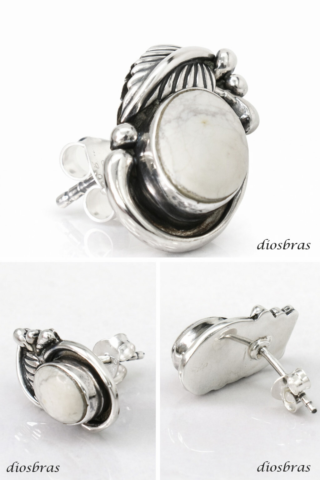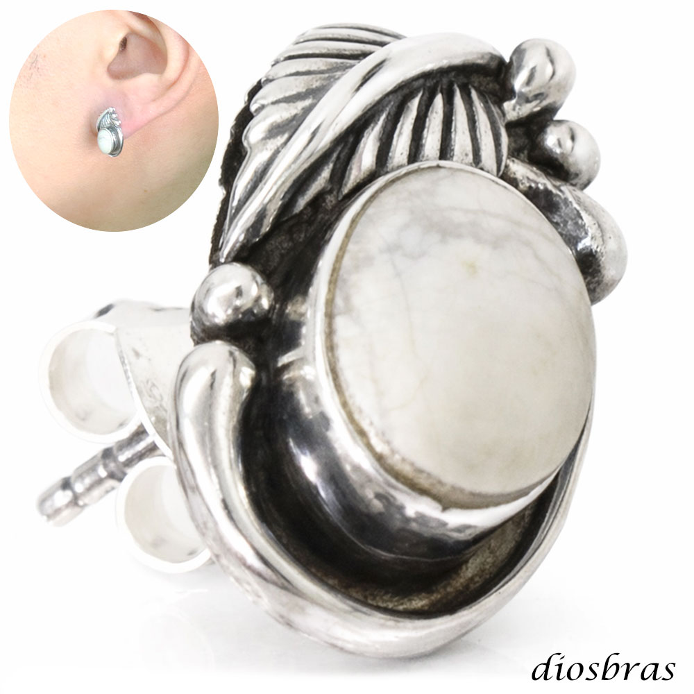 ハウライト フェザー ピアス 羽根 ネイティブアメリカン インディアン ホワイトハウライト シルバー925 片方 パワーストーン ピアス片耳 [dios-pi467]
