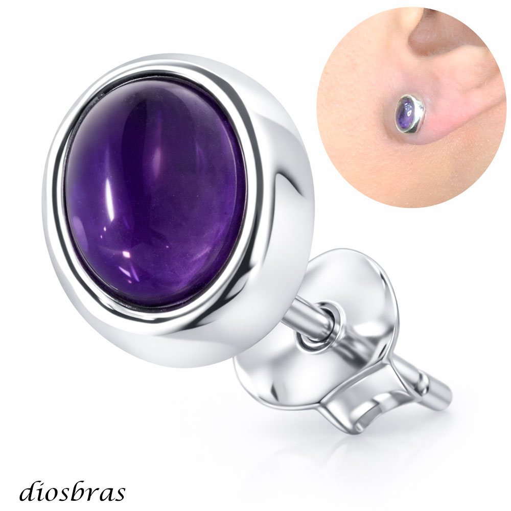 アメジスト ピアス 楕円 オーバル ワンポイント しずく 本物シルバー925 ピアス 片方 パワーストーン ピアス片耳 片方販売ピアス メンズ レディース イヤリング [dios-pi481]