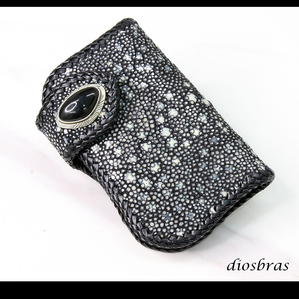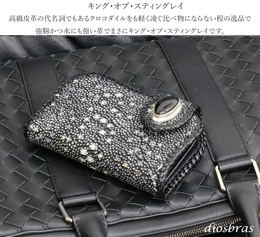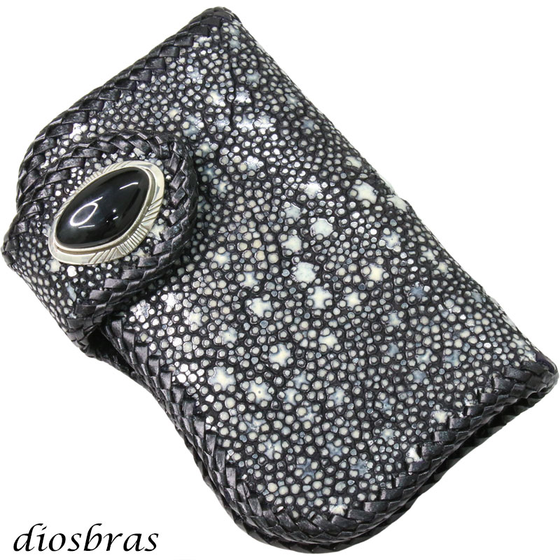 メンズ 二つ折り財布 バイカーズウォレット イバラエイ ミドル ハーフウォレット シンプル レザーウォレット 本革 カットスティングレイ エイ 革 シルバー925コンチョ 革財布 皮財布 ロングウォレット 天然皮革 天然皮革 梅花皮 かいらぎ メンズ 長財布 ガルーシャ [HW-1-STE5]