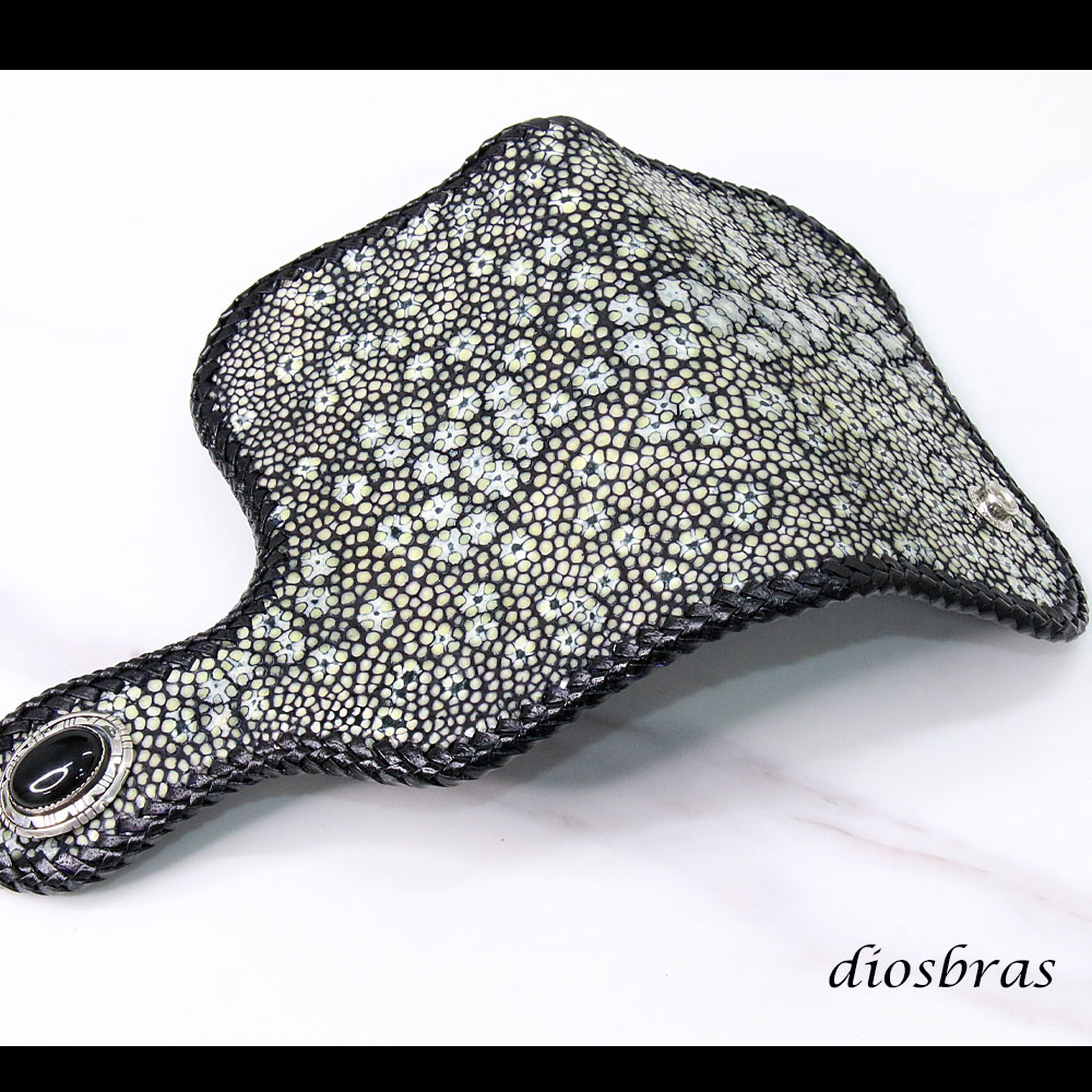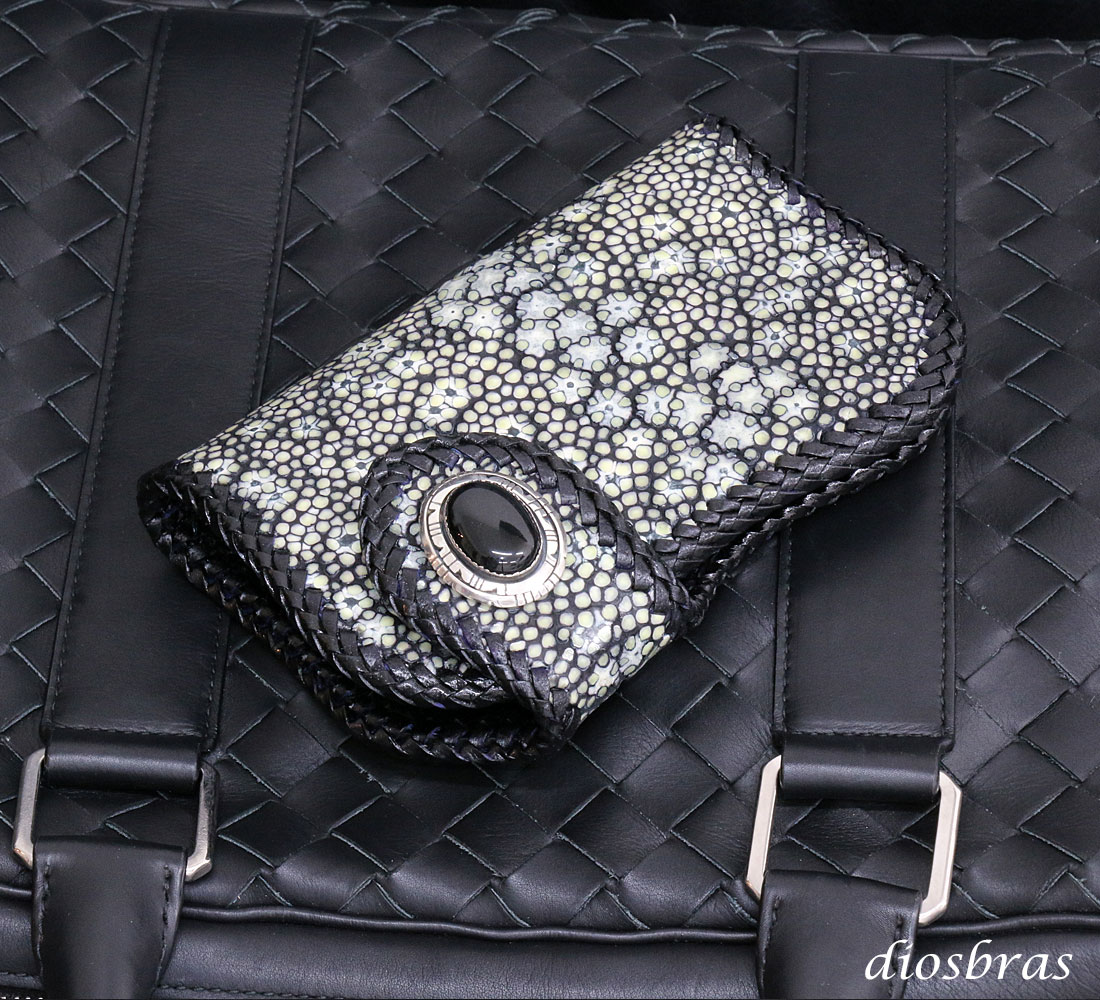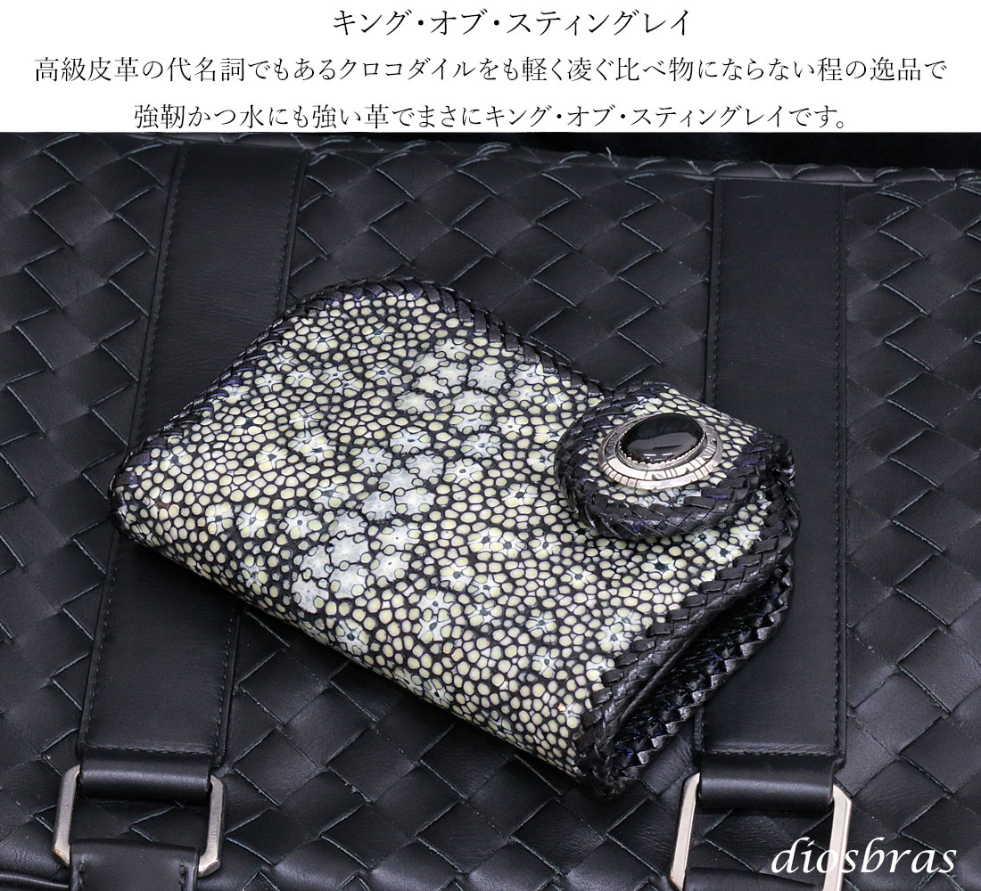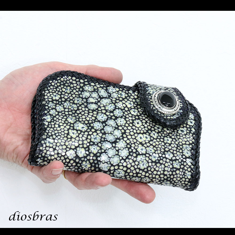 メンズ 二つ折り財布 バイカーズウォレット イバラエイ ミドル ハーフウォレット シンプル レザーウォレット 本革 カットスティングレイ エイ 革 シルバー925コンチョ 革財布 皮財布 ロングウォレット 天然皮革 天然皮革 梅花皮 かいらぎ メンズ 長財布 ガルーシャ [HW-1-STE6]