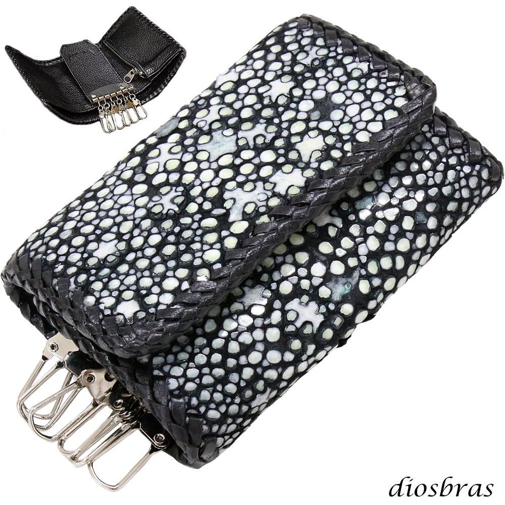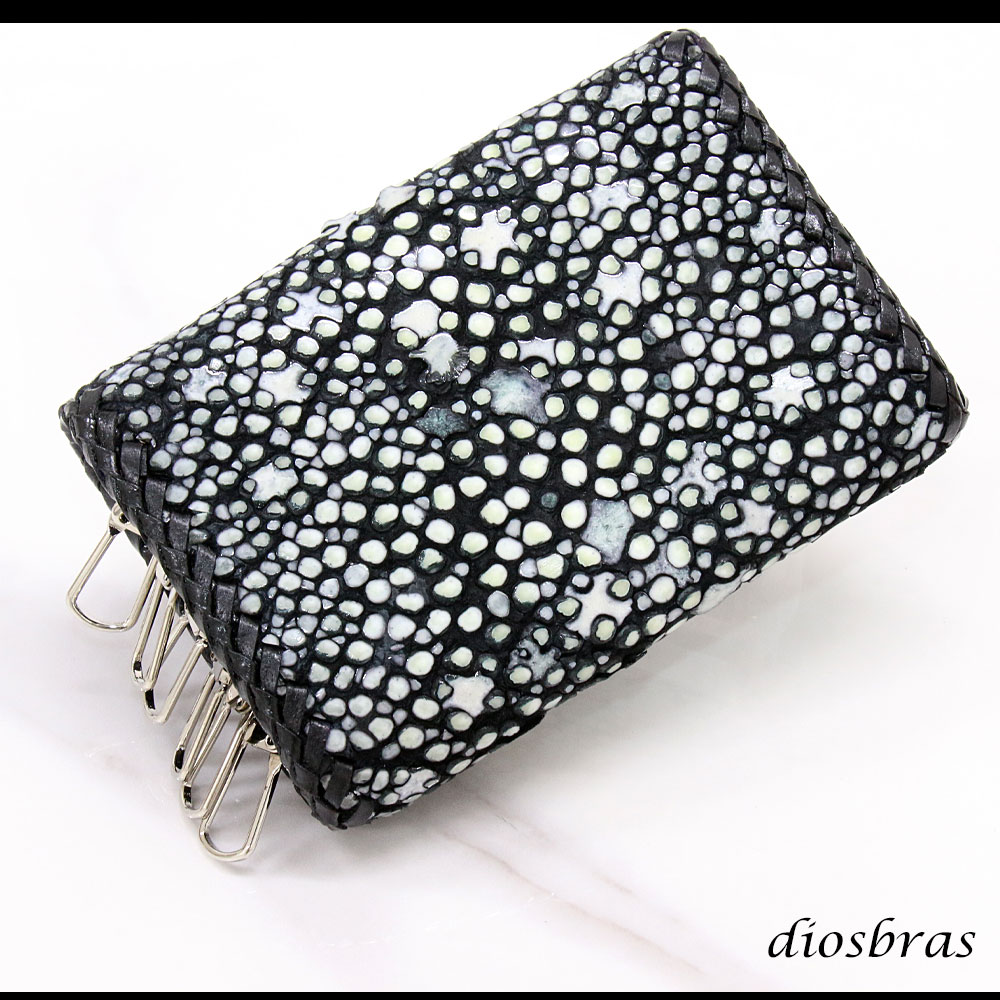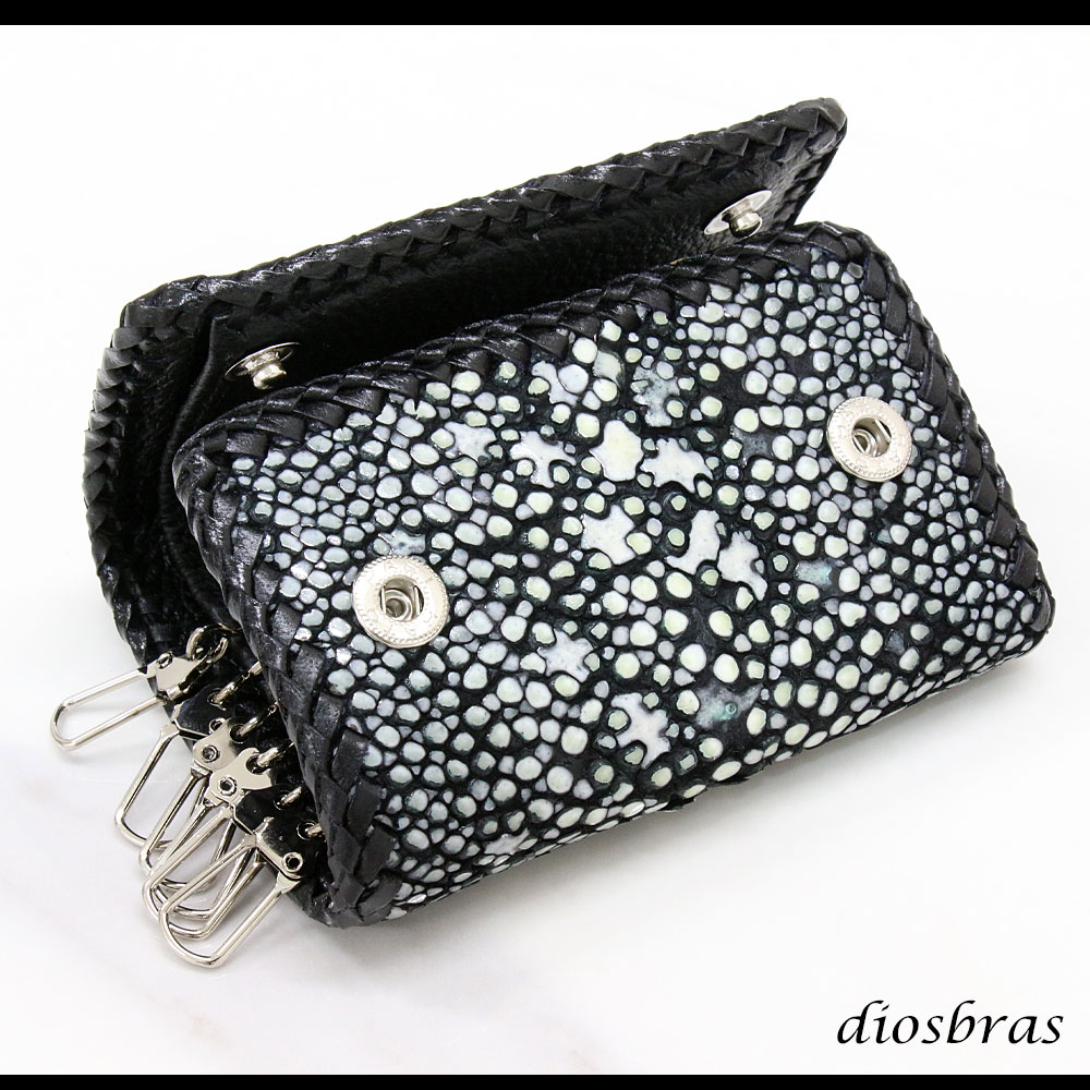 キーケース 6連 ガルーシャ スティングレイ メンズ レディース 本革 スティングレー スター エイ革 梅花皮 かいらぎ イバラエイ スタースティングレー バイカー 牛革 ハンドメイド 三つ折り財布 財布 レザーウォレット ウォレット バイカー ハーフウォレット