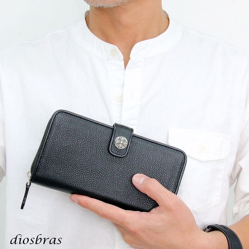 長財布 クロス トラッカーウォレット シルバー925製 コンチョ 十字架 レザーウォレット 革財布 本革 レザー シュリンクレザー かぶせ財布 ウォレット ハンドメイド 牛革 レディース おしゃれ スリム メンズ長財布 男性 女性 メンズ財布 ファスナー カード収納 大容量