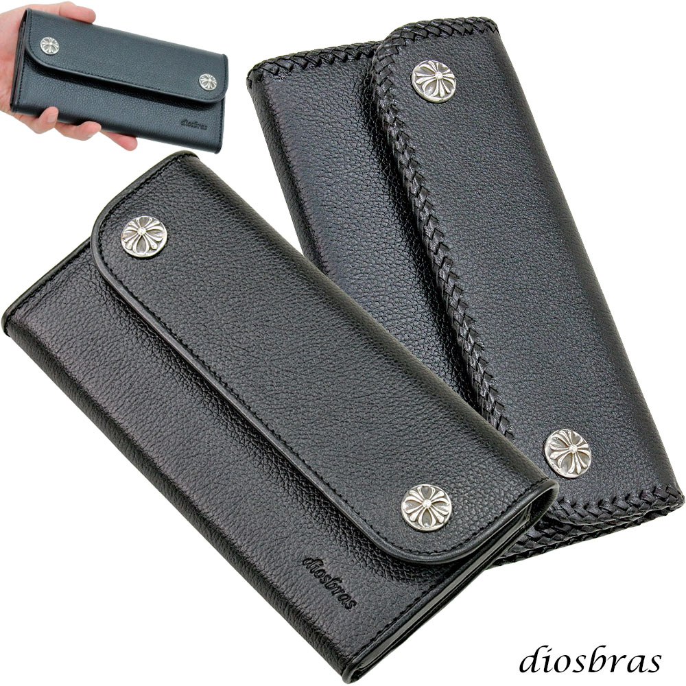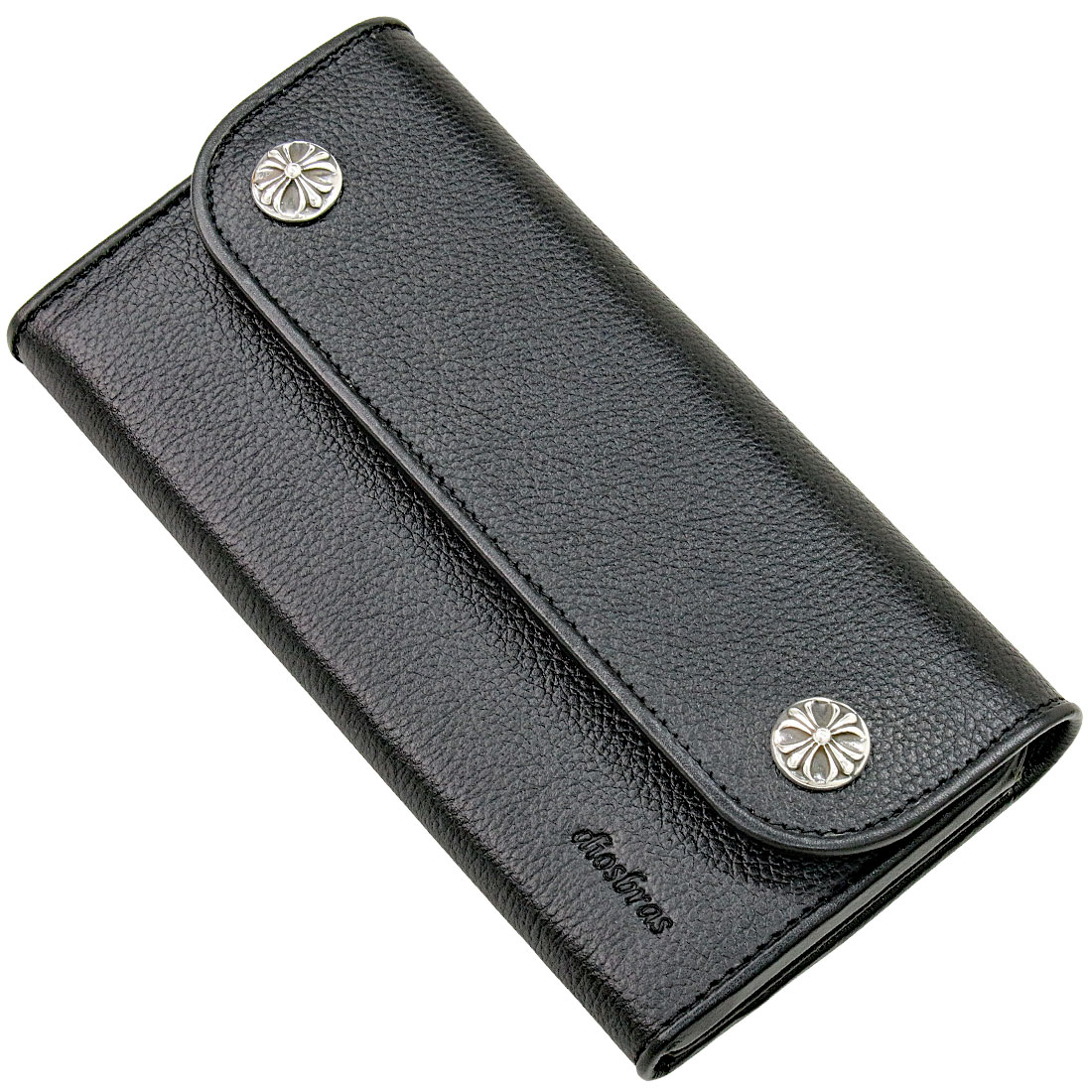 長財布 クロス トラッカーウォレット シルバー925製 コンチョ 十字架 レザーウォレット 革財布 本革 レザー シュリンクレザー かぶせ財布 ウォレット ハンドメイド 牛革 レディース おしゃれ スリム メンズ長財布 男性 女性 メンズ財布 ファスナー カード収納 大容量